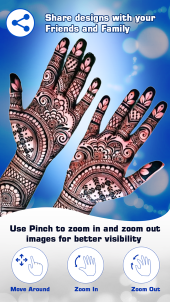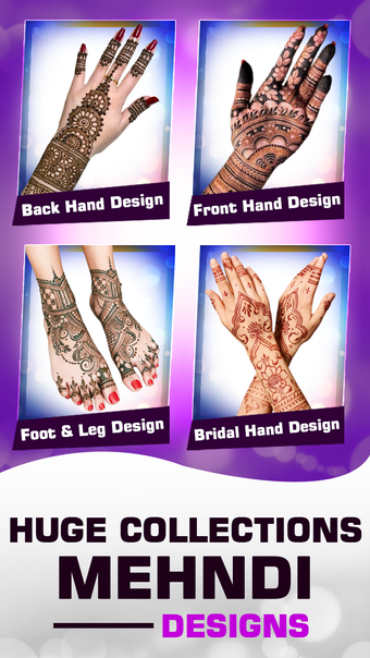 مع هذا التطبيق، يمكن للمستخدمين تصفح فئات مختلفة من تصاميم الحناء، بما في ذلك اليد الأمامية، اليد الخلفية، القدم وتصاميم العروس. التصاميم منظمة بشكل جيد وسهلة المتابعة، مما يجعل من السهل على المستخدمين تكرارها بأنفسهم.